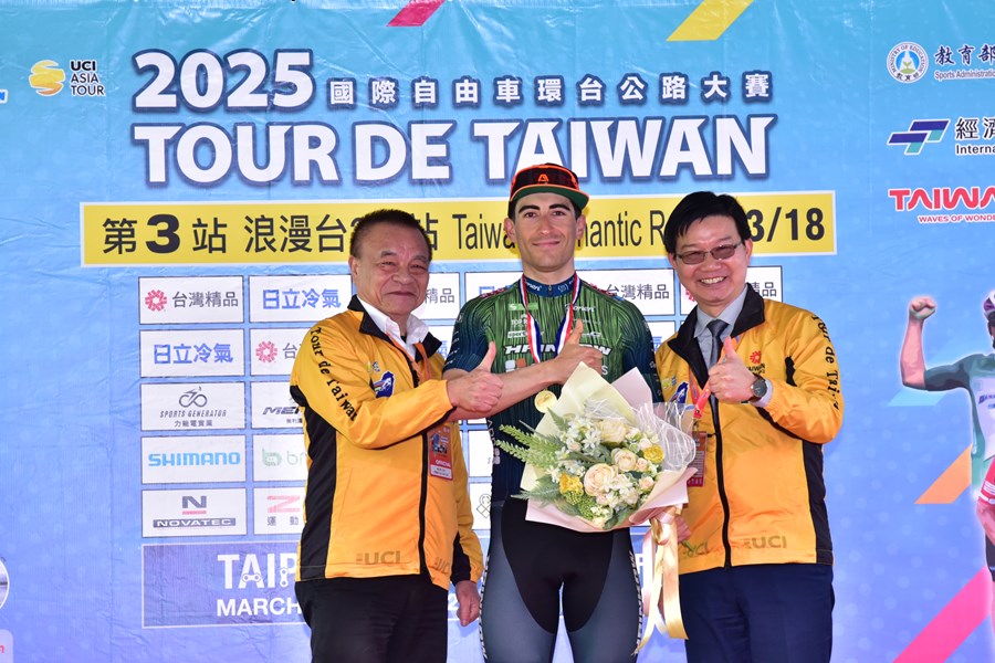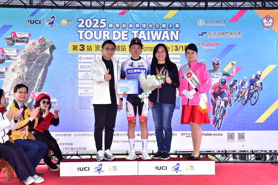 個人分站冠軍獲市府客委會主委江俊龍及中華民國自由車協會秘書長李開志頒發獎項