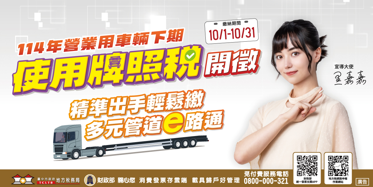 【轉知】提醒納稅義務人請如期繳納本(114)年營業用車輛下期使用牌照稅