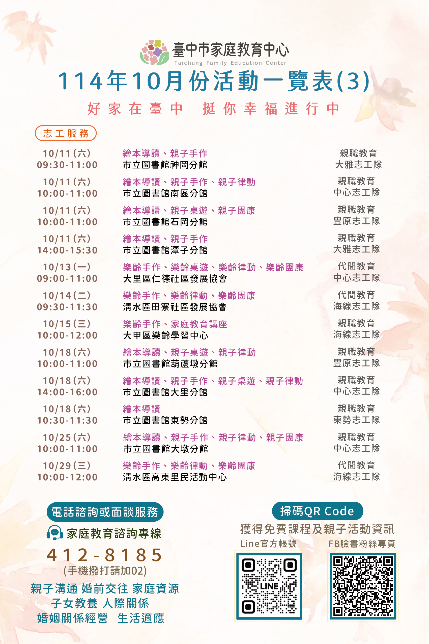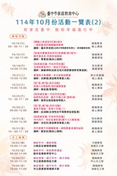 【轉知】臺中市家庭教育中心114年10月份活動一覽表