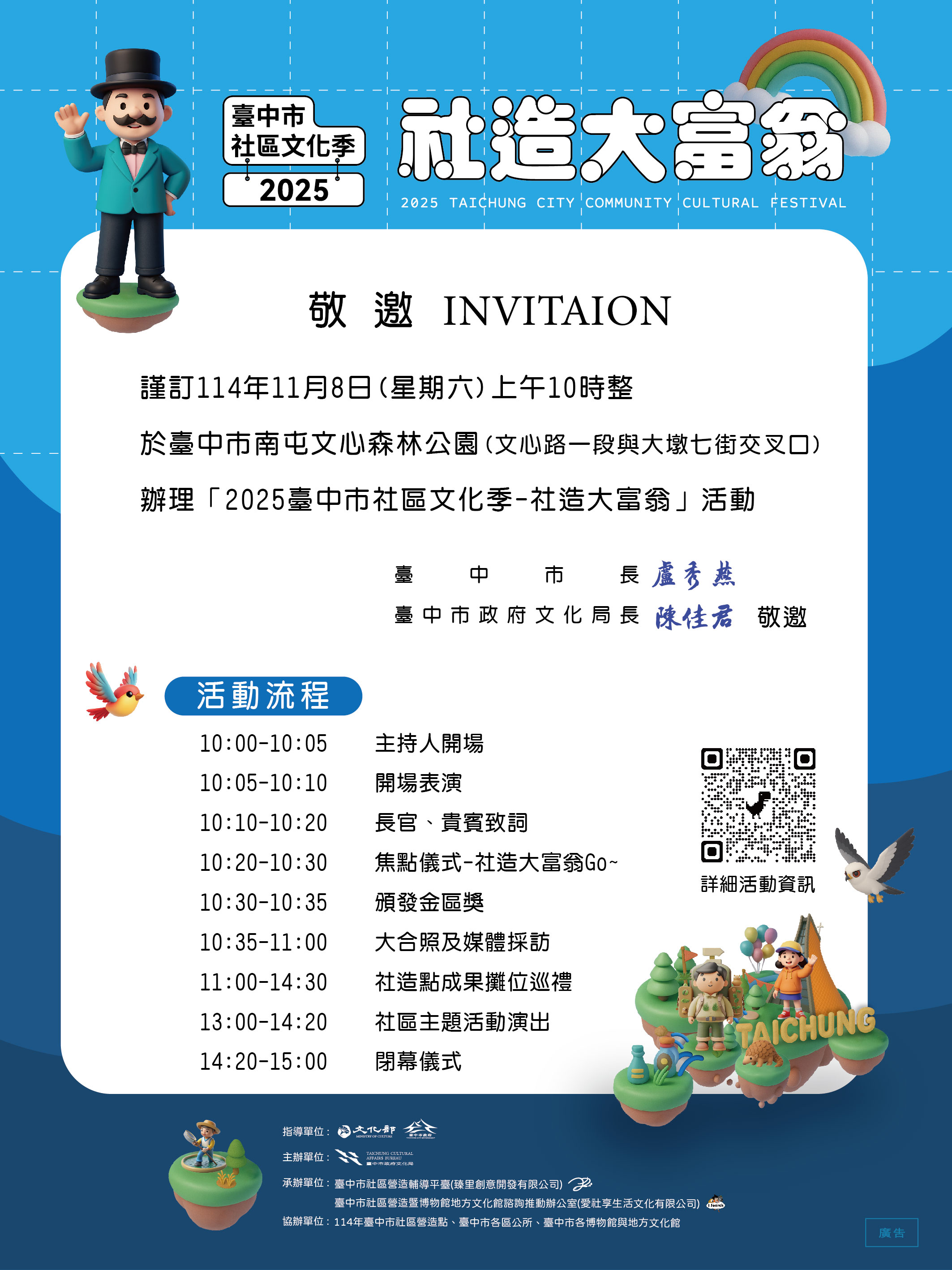 【轉知】臺中市政府文化局「2025臺中市社區文化季-社造大富翁」