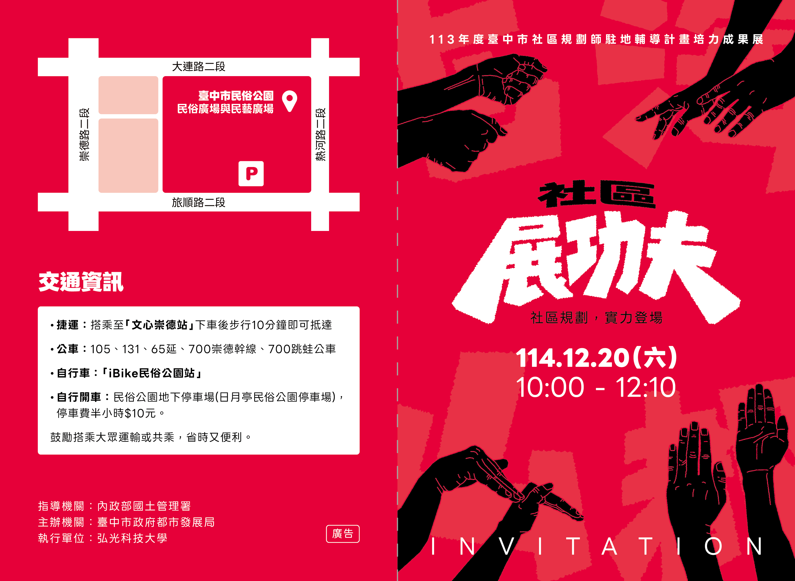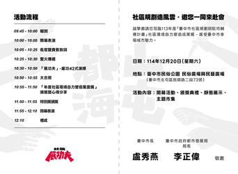 【轉知活動】113年度臺中市社區規劃師駐地輔導計畫成果展覽暨推廣案-社區展功夫