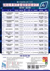 【轉知】勞工局辦理「115年短期職業訓練暨技能認證訓練計畫開班一覽表」